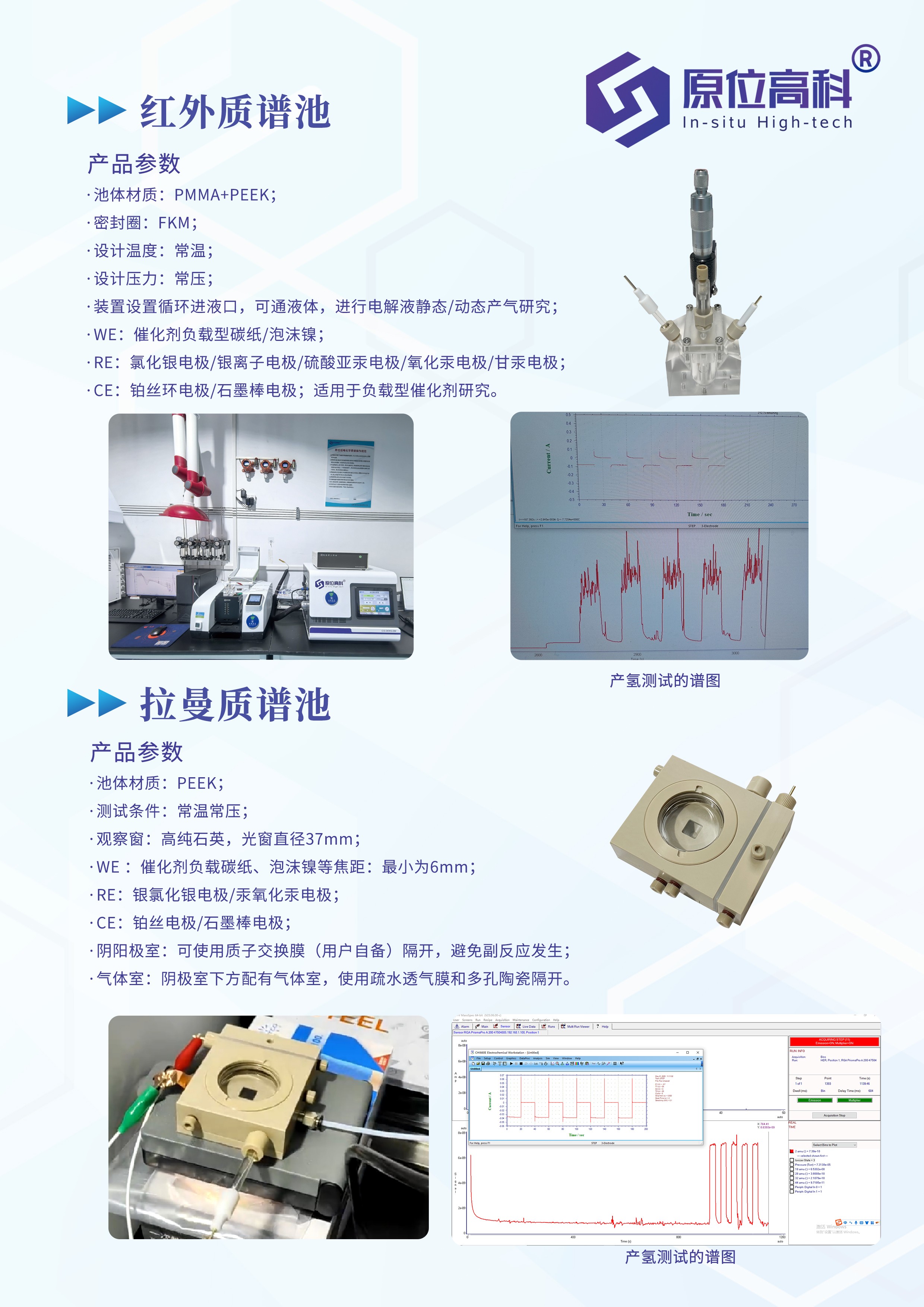 原位电化学微分质谱通过电化学池与质谱系统的在线联用,实现了电化学反应的动态监测与实时追踪。该系统能在电化学反应过程中,于毫秒级时间内对反应产生的气体、挥发性中间产物及最终产物进行定性或定量分析。