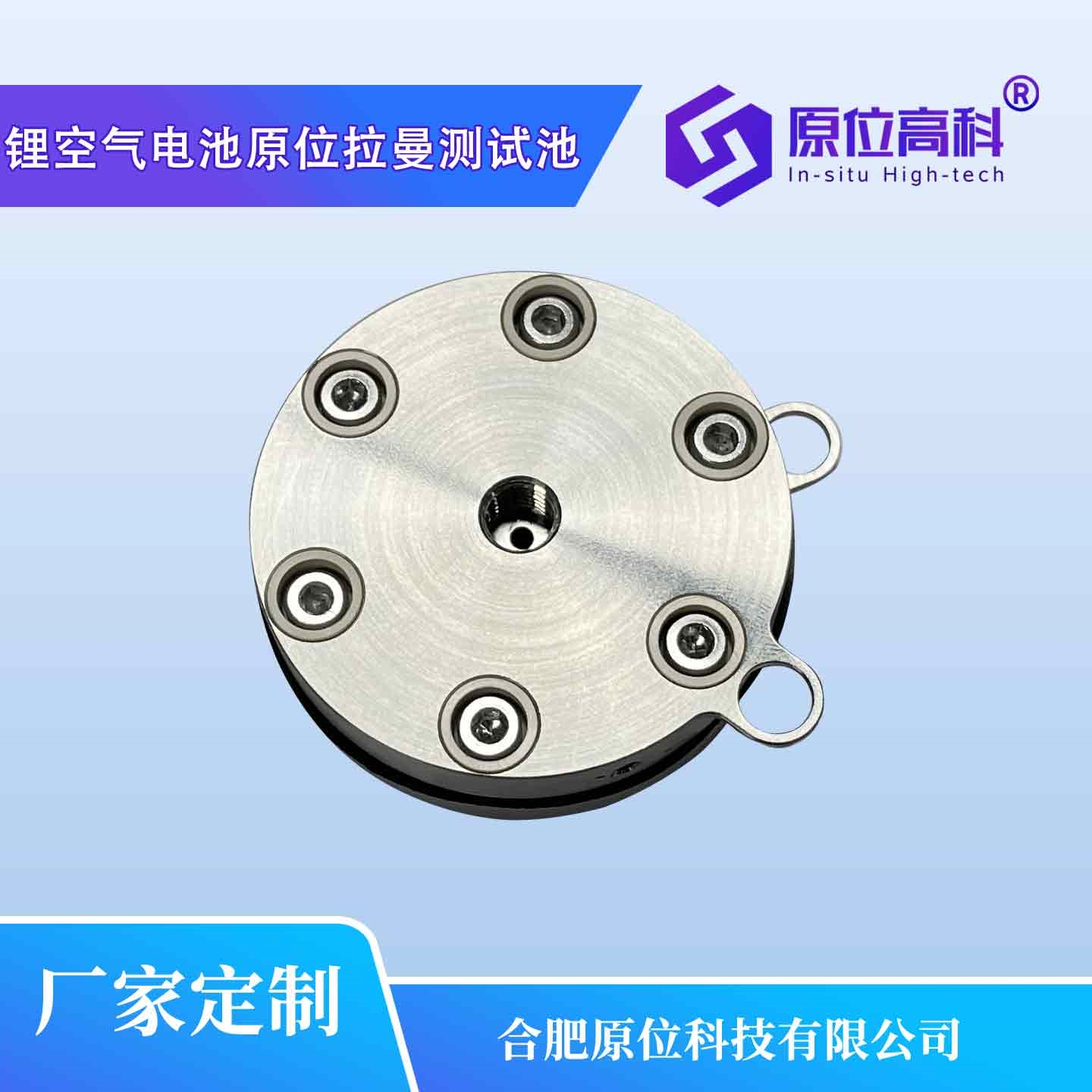 锂空气电池原位拉曼测试池,主要用于锂空气电池充放电过程中空气电极的拉曼光谱数据在线采集,可对空气电极材料化学反应过程中的相变情况进行实时、在线监测。